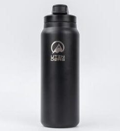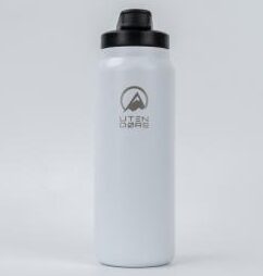 Botellón térmico Utendors TPG-PE blanco de 950 ml con diseño de triple capa interior. Incluye tapa con pico, mango plegable y pajita antigoteo. Mantiene bebidas frías 24 h y calientes 12 h. Libre de BPA y apto para lavavajillas. **No incluye bota.**