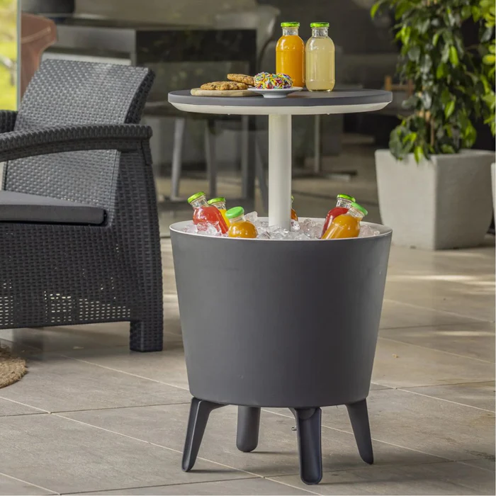 Cool Bar 3-en-1 Grafito/Blanco — mesa alta, enfriador y mesa de cóctel en un solo diseño. ¡Elegante, funcional y disponible al mejor precio en El Mercadillo, tu almacén de botellas! 🍹❄️