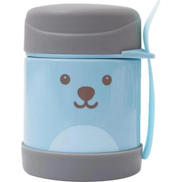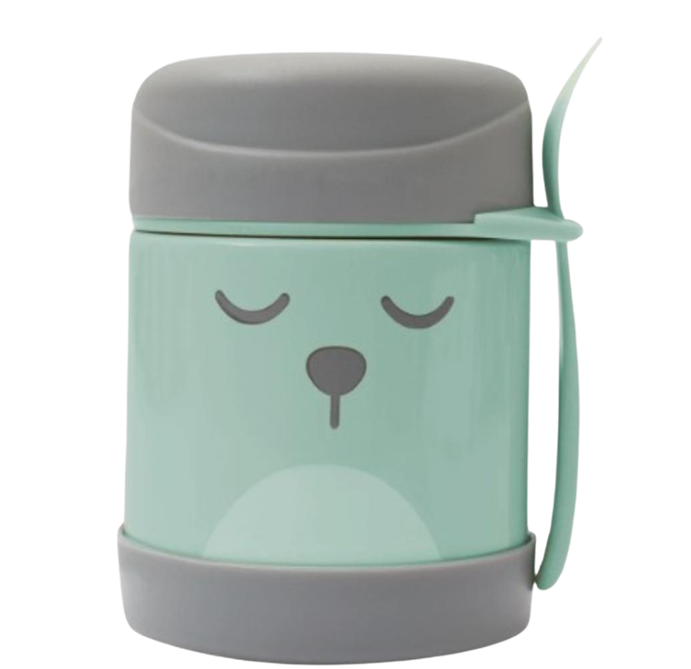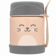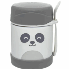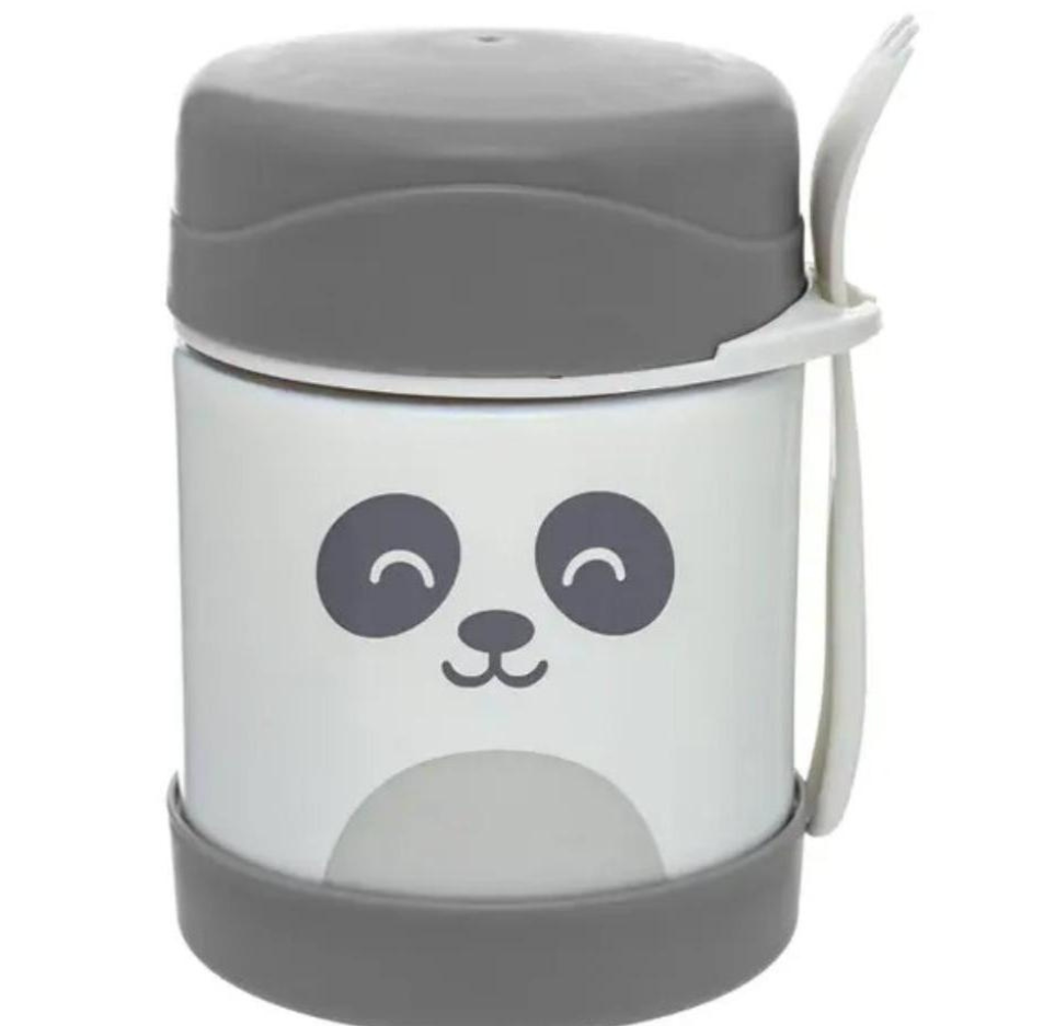 Pote térmico Buba Baby 320ml de acero inoxidable, mantiene la comida caliente o fría hasta 5 h. Con tapa antiderrame, cuchara y collarín porta-cubiertos. ¡Ideal para salidas y el cole!