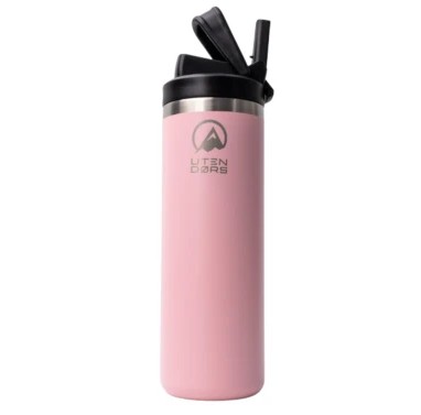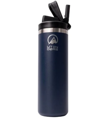Termo Utendors de 600ml, con triple capa aislante y mango plegable. Fabricado en acero inoxidable, mantiene bebidas frías por 24 h y calientes por 12 h. Incluye pajita flexible antifugas. Libre de BPA y apto para lavavajillas.
